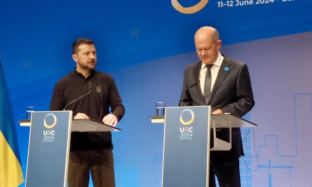 Berlin, 11.06.2034 Bundeskanzler Olaf Scholz und der ukrainische Präsident Wolodymyr Selenskyj brachten ihre Zufriedenheit darüber zum Ausdruck, dass die Teilnehmer der Konferenz zum Wiederaufbau der Ukraine...