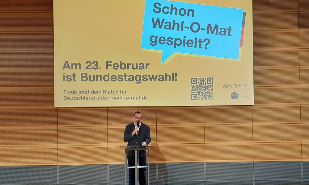 Berlin 06.02.2025 Thomas Krüger, Präsident der Bundeszentrale für politische Bildung, eröffnet heute „Wahl-O-Mat“ durch Vertreter der Parteien, die 2021 in den Bundestag gewählt würden. MOTO :...