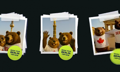 Berlin 14.04.2025 • Kanadische Reisende suchen neue Reiseziele • visitBerlin startet Werbekampagne in Kanada • Neue Direktverbindung Toronto–Berlin ab 19. Juni Ein Bär und ein Biber liegen sich vor...