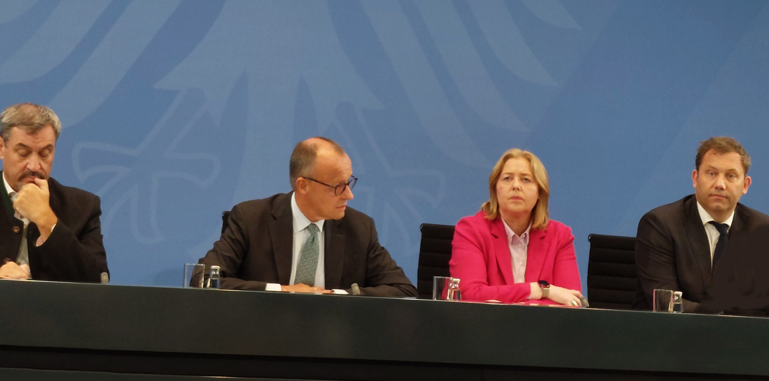 – Konferenz der Spitzen der Regierungskoalition. Unter dem Vorsitz von Bundeskanzler Friedrich Merz als CDU-Vorsitzendem nahmen auch CSU-Chef Markus Söder, Bundesfinanzminister und SPD-Vorsitzender Lars Klingbeil sowie seine Kollegin, Arbeitsministerin Bärbel Bas.