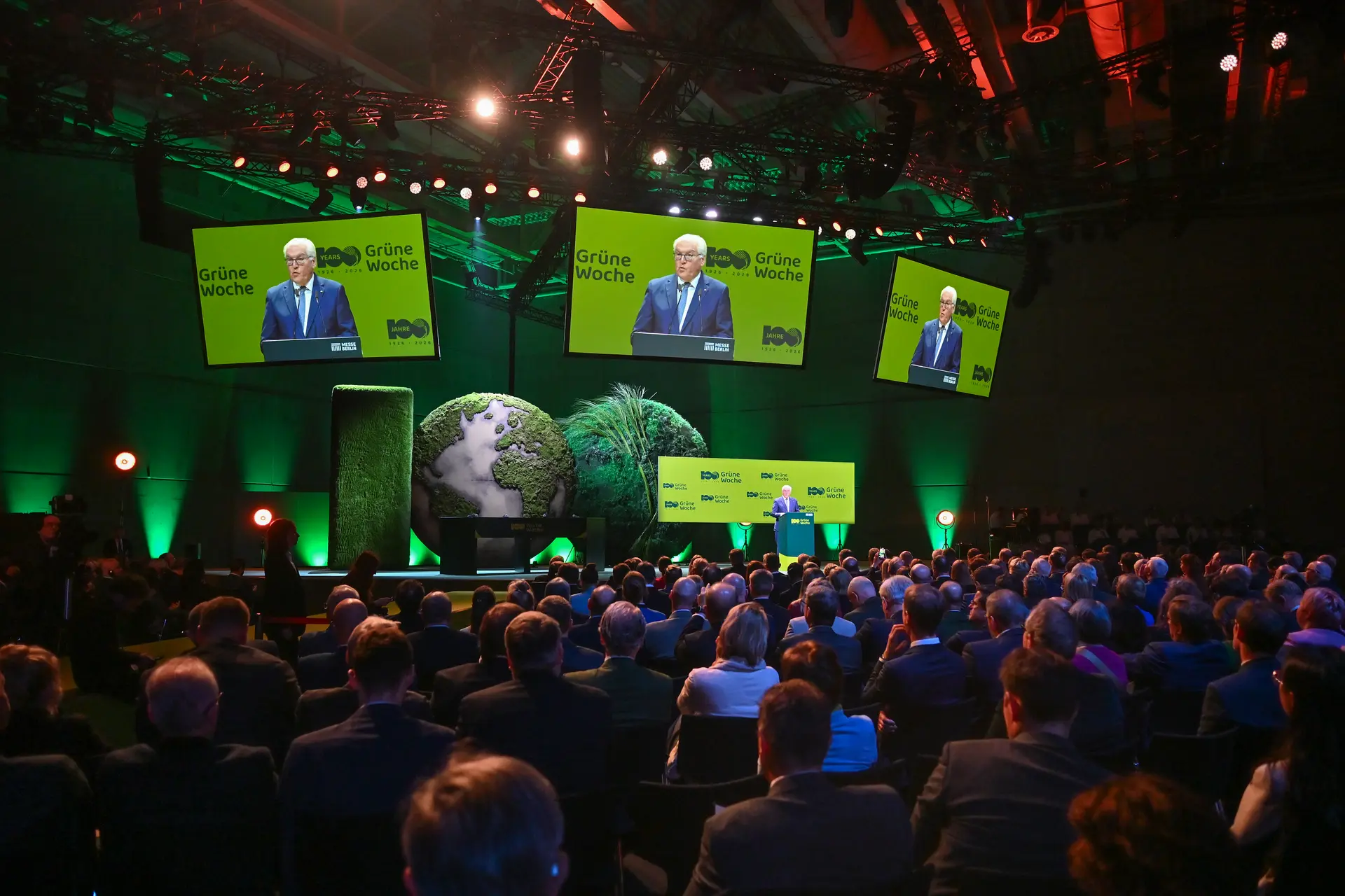 Das deutsche Staatsoberhaupt lobte die Messe 100 Jahre nach ihrer Gründung als einen Ort der Debatte, an dem die wichtigen Zukunftsfragen verhandelt werden. Aus der Politik hielten außerdem Berlins Regierender Bürgermeister Kai Wegner, Manuela Schwesig als Ministerpräsidentin des Partners Mecklenburg-Vorpommern, EU-Kommissar Christophe Hansen sowie Bundeslandwirtschaftsminister Alois Rainer Reden bei der Eröffnung der Grünen Woche im City Cube.