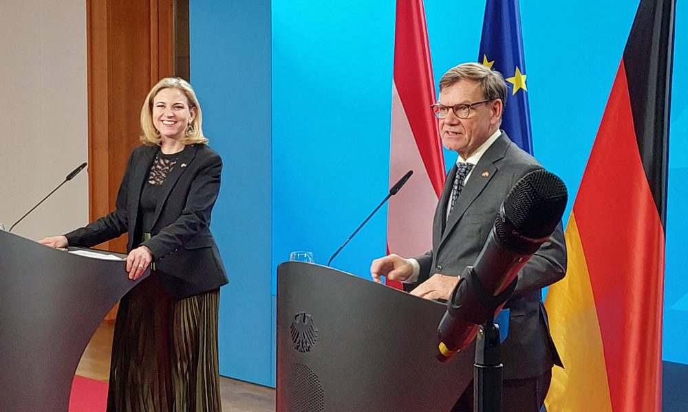 Berlin 16.01.2026 – Der deutsche Außenminister Johannes Wadephul begrüßte am Freitag, den 16. Januar, in Berlin auf einer Pressekonferenz mit seiner österreichischen Amtskollegin Beate Reisinger das...