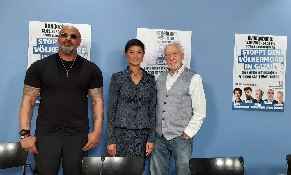 Berlin 08.09.2025 – Die Gaza-Solidaritätskampagne wird von Menschenrechtsorganisationen sowie Aktivisten aus Kunst und Kultur organisiert. Zahra Wagenknecht, Vorsitzende des Bündnis...