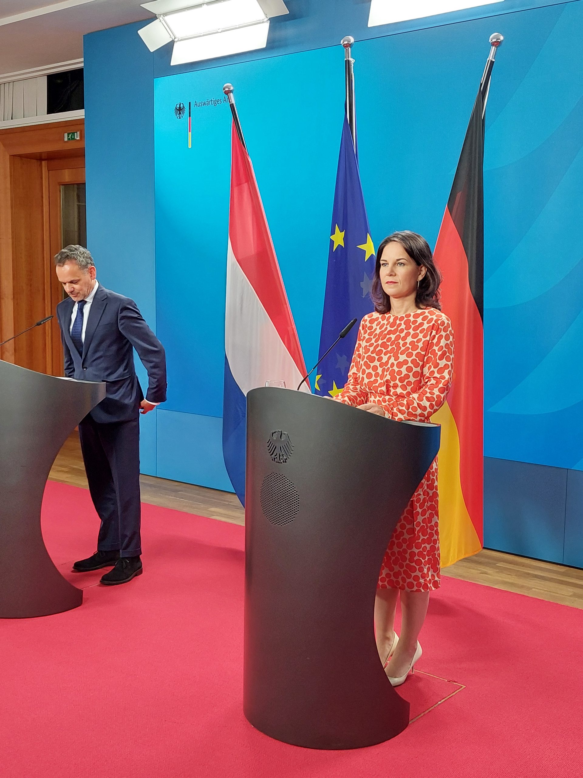 Die deutsche Außenministerin Annalena Baerbock und ihr niederländischer Amtskollege Casper Veldkamp bekundeten ihre Zufriedenheit mit den Beziehungen zwischen ihren Ländern, insbesondere mit der militärischen und politischen Zusammenarbeit auf allen europäischen und internationalen Ebenen, da europäische Zusammenarbeit und Solidarität im Interesse aller liegen.
