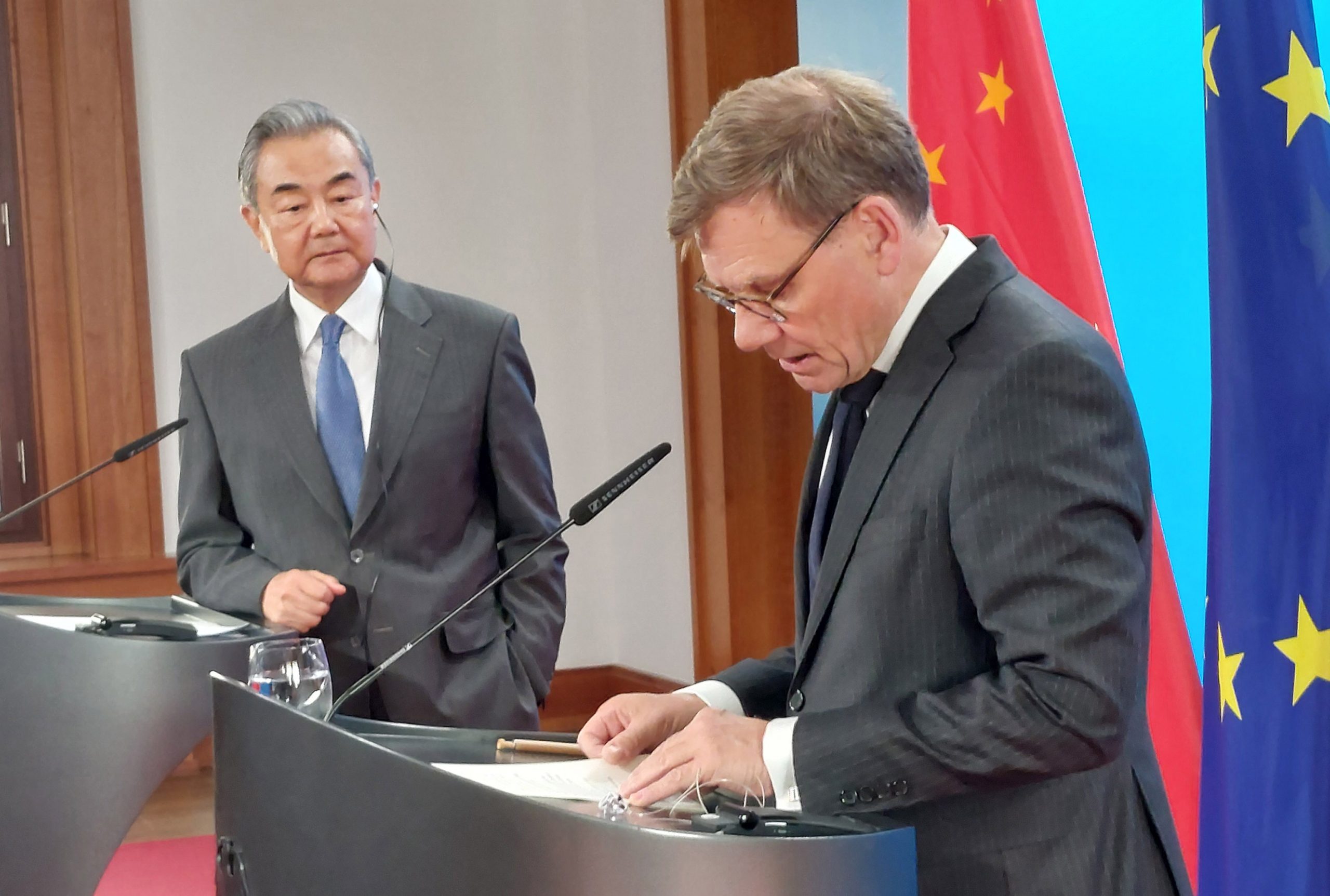 Er betonte, dass Peking eine Deeskalation und ein Ende des russisch-ukrainischen Krieges anstrebe, dabei aber unabhängig von allen Parteien bleibe, die im russisch-chinesischen Krieg Öl ins Feuer gießen. Der chinesische Außenminister verkündete, dass Peking bestrebt sei, seine Beziehungen zu Berlin insbesondere in den Bereichen Wirtschaft, Sicherheit und Strategie sowie Wissenschaft zu stärken. Er betonte die Bereitschaft Pekings, konstruktiv zusammenzuarbeiten, um Frieden in der Welt, insbesondere im Nahen Osten und in Afrika, zu erreichen, und bezeichnete die Afrikaner als Opfer der Gier des europäischen Kolonialismus.