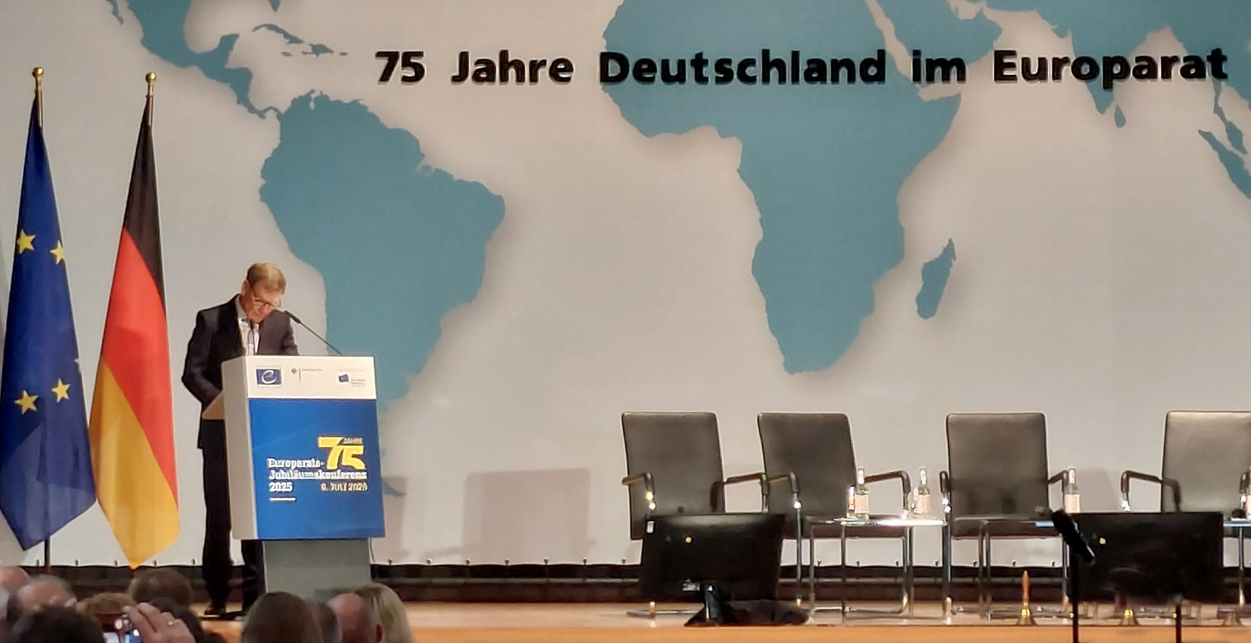 Dies sagte er in einer Rede zur Eröffnung der deutschen Feierlichkeiten zum 75. Jahrestag der Gründung des Europarats und des Beitritts Deutschlands.