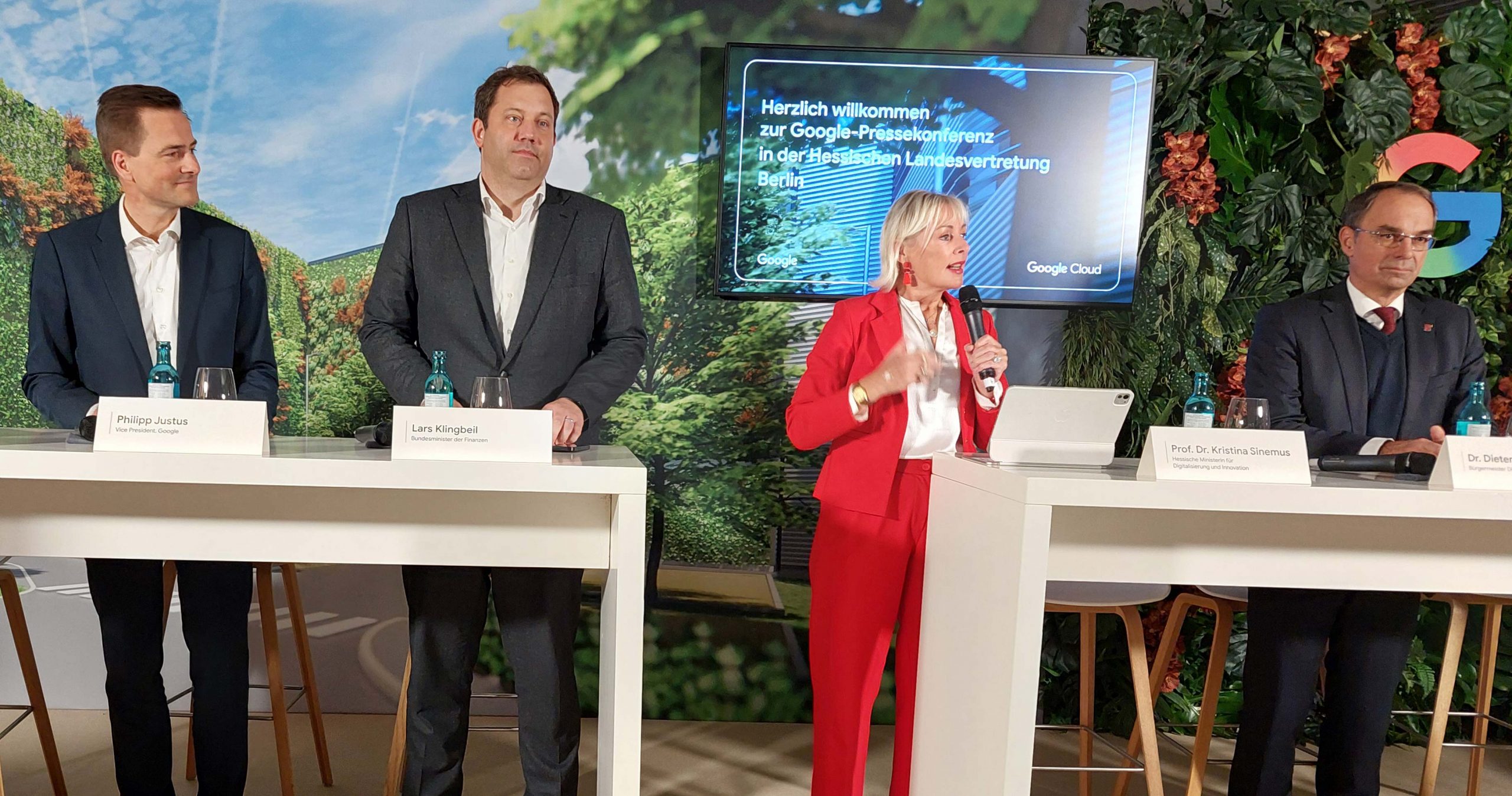 – Bundesfinanzminister Lars Klingbeil gab mit Google in der Hessische Landervertretung in Berlin eine Pressekonferenz zum Thema „Google Invest in Deutschland“