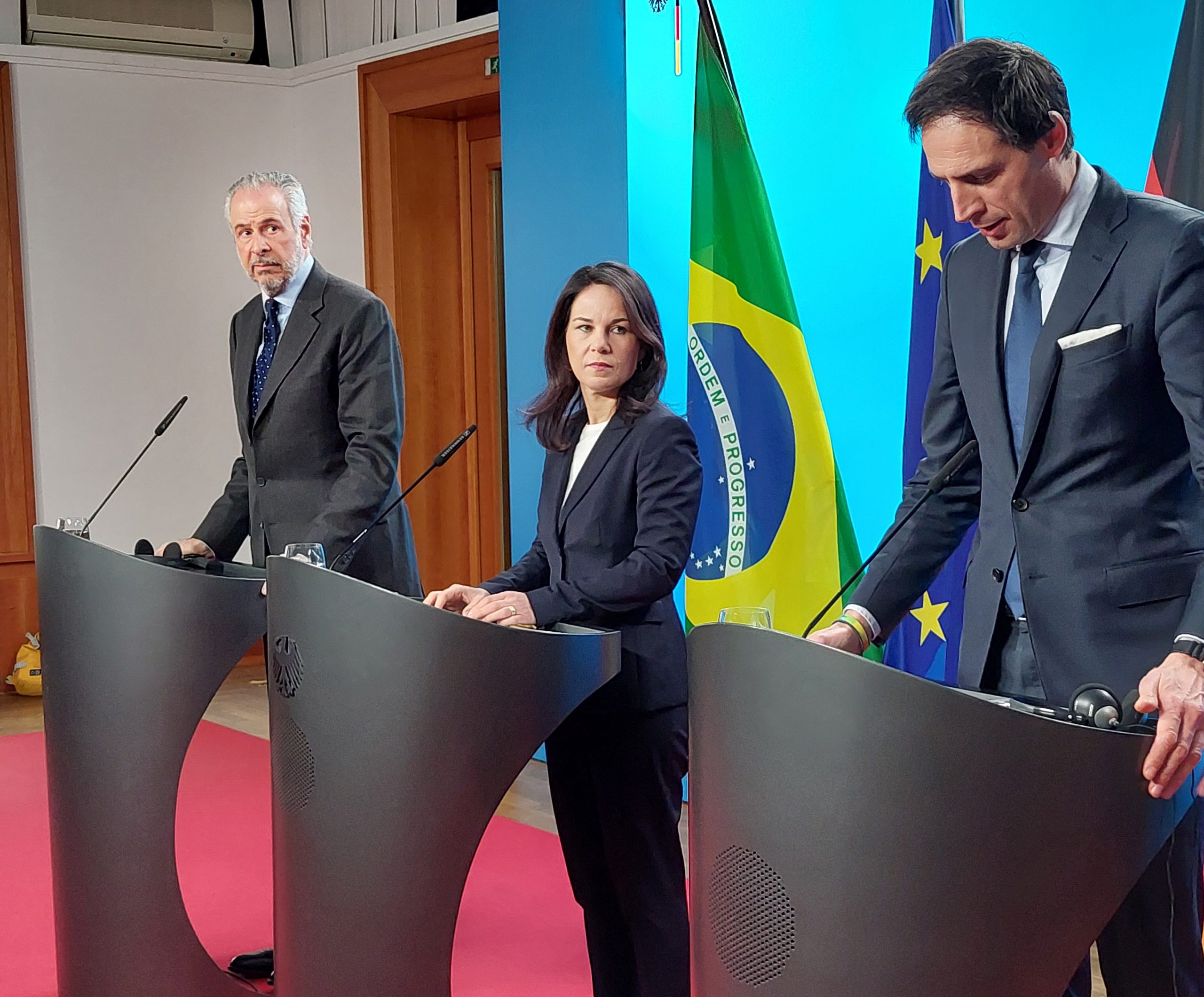 Bundesaußenminister und der brasilianischer Außenminister Mauro Vera sowie der Umweltbeauftragte der Europäischen Kommission bekräftigten auf einer Pressekonferenz: