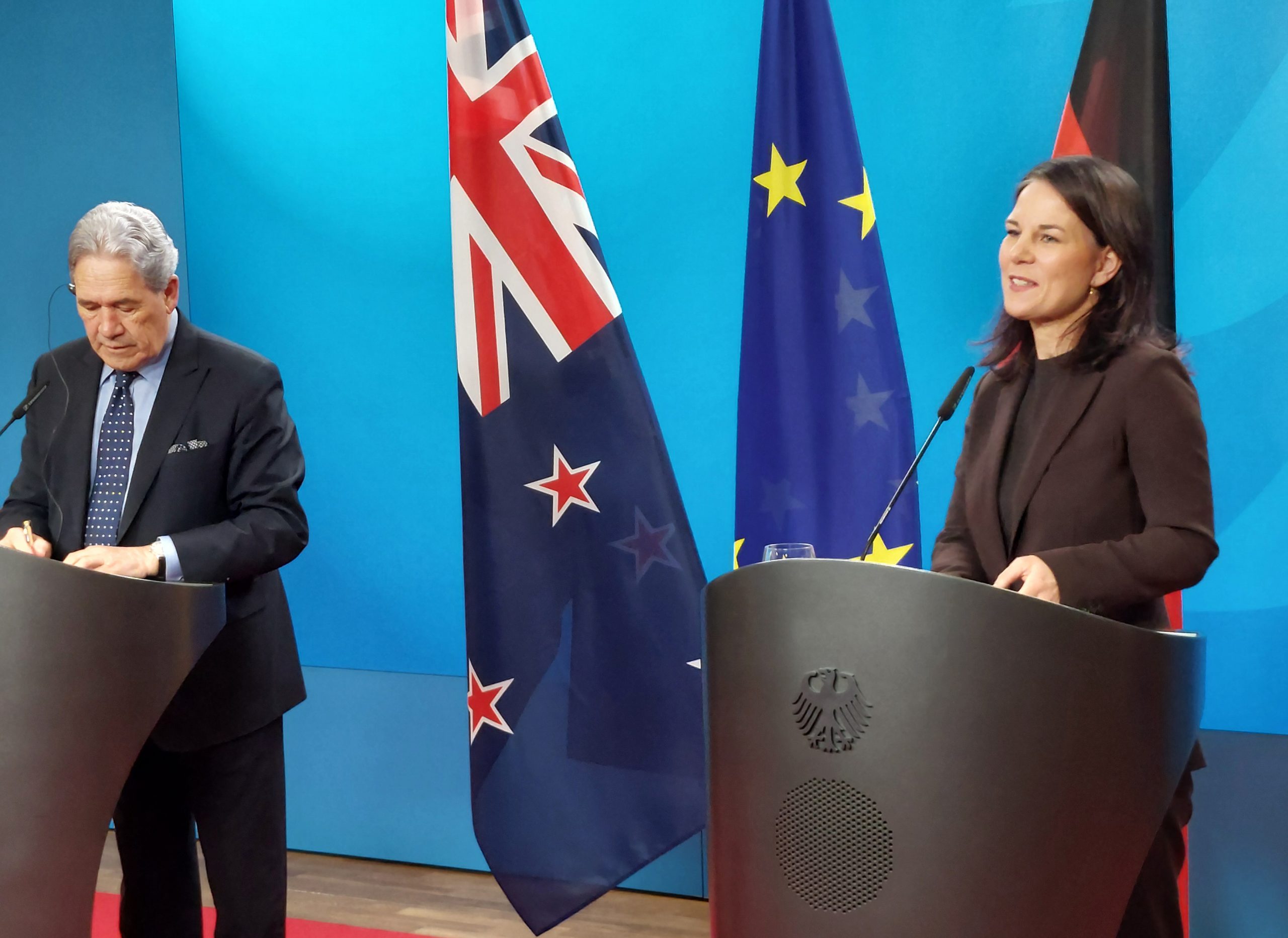 Bundesaußenministerin Annalena Baerbock und der neuseeländische Außenminister Wenston Peters zeigten sich zufrieden mit der Entwicklung der Beziehungen zwischen ihren Ländern. Baerbock verwies auf die Bestrebungen der Bundesregierung, die Zusammenarbeit mit den Ländern im Südpazifik auch auf den wissenschaftlichen Austausch und die militärische Zusammenarbeit auszuweiten.